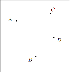 • En el parque de la figura hay papeleras en los puntos A, B, C y D. Dibuja el conjunto de puntos del parque para los que la papelera más cercana es la situada en el punto A.