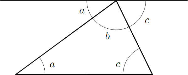 Claramente, el resultado debería ser introducido de forma experimental, midiendo los ángulos en una serie de triángulos y comprobando que la suma es en todos los casos (aproximadamente) 180º. Pero me parece esencial una segunda fase, en la que se presente un argumento general. Veamos dos opciones: