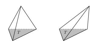 El segundo es sobre secciones de pirámides (y prismas): si consideramos dos pirámides de igual base y altura, como las de la figura, y las cortamos por un plano horizontal, las secciones que se obtienen son iguales.
